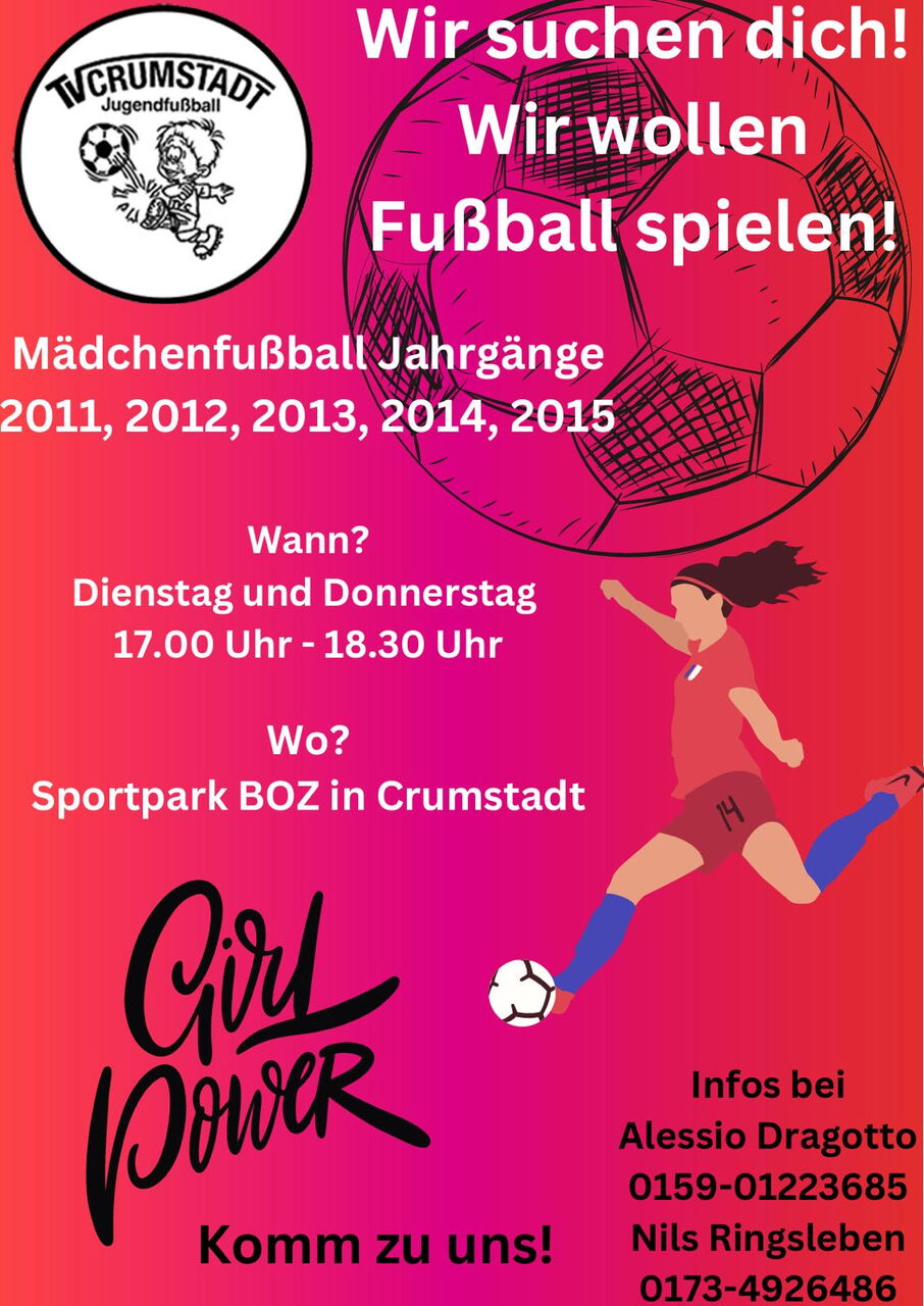 Trainiert wird immer am Dienstag und Donnerstag von 17.00 Uhr bis 18.30 Uhr im Sportpark BOZ in Crumstadt. Kommt gerne vorbei, ob mit oder ohne Fußballvorerfahrung.