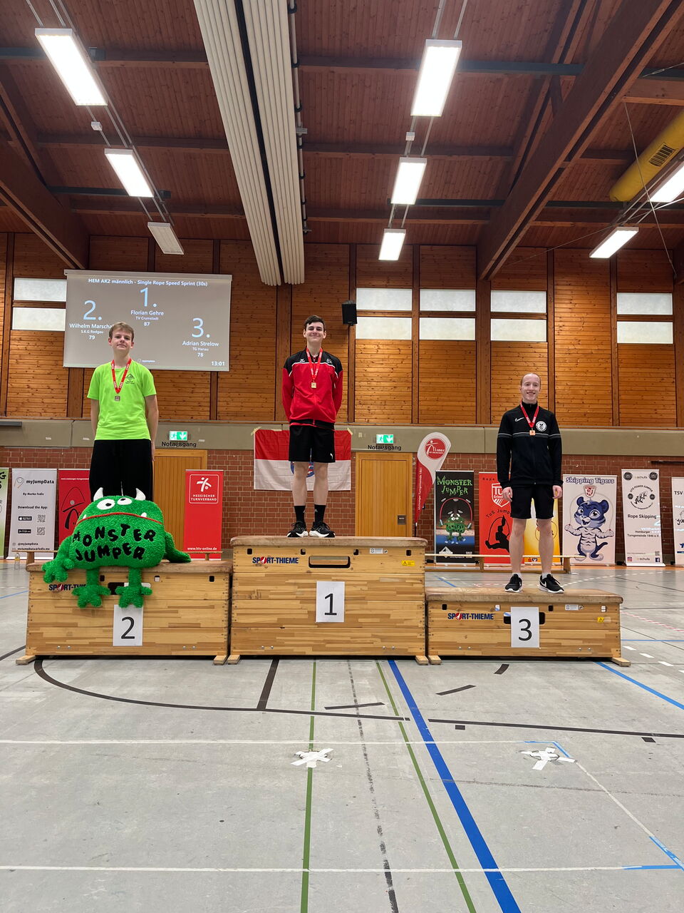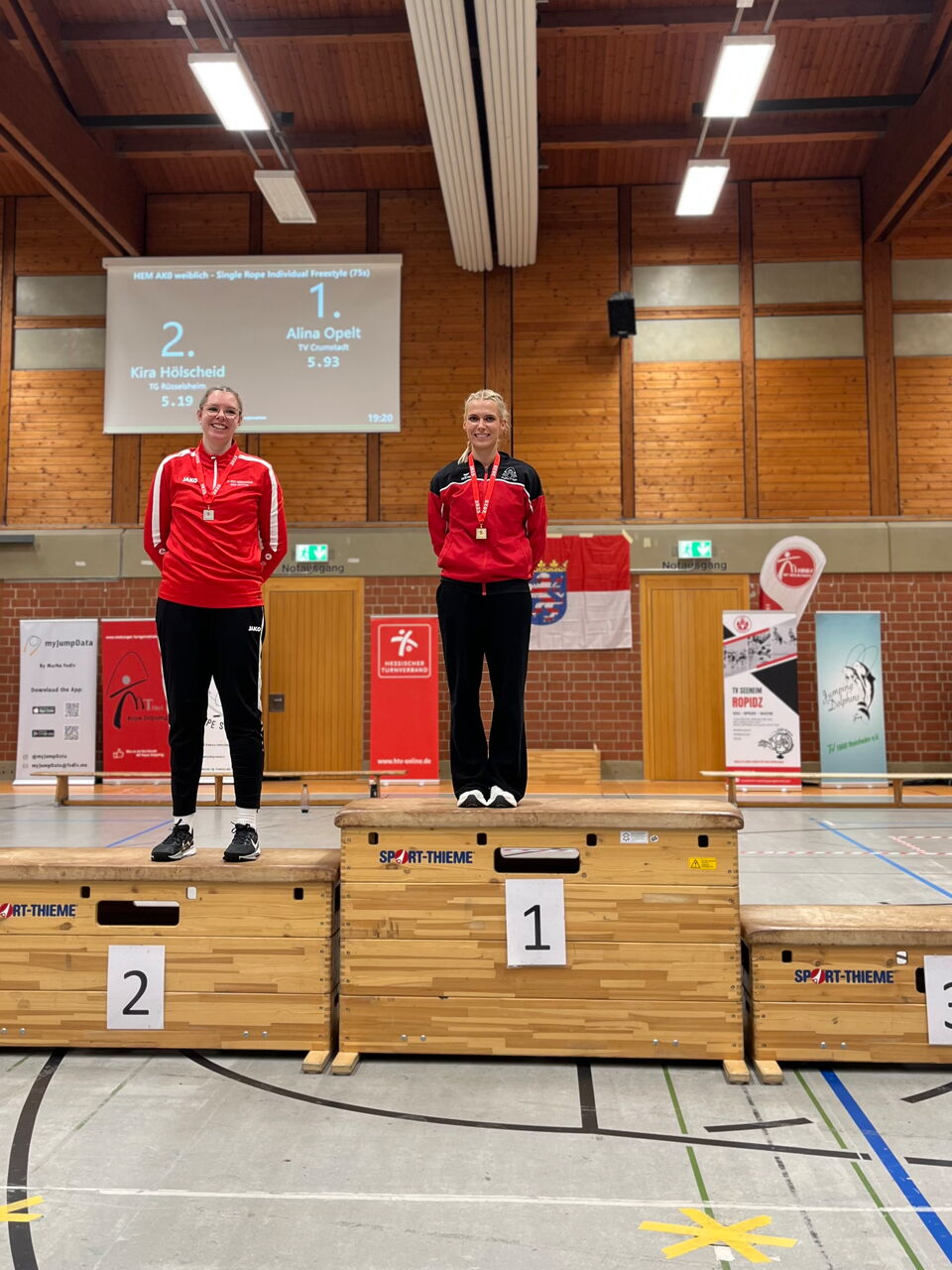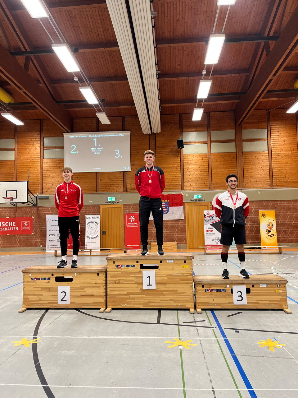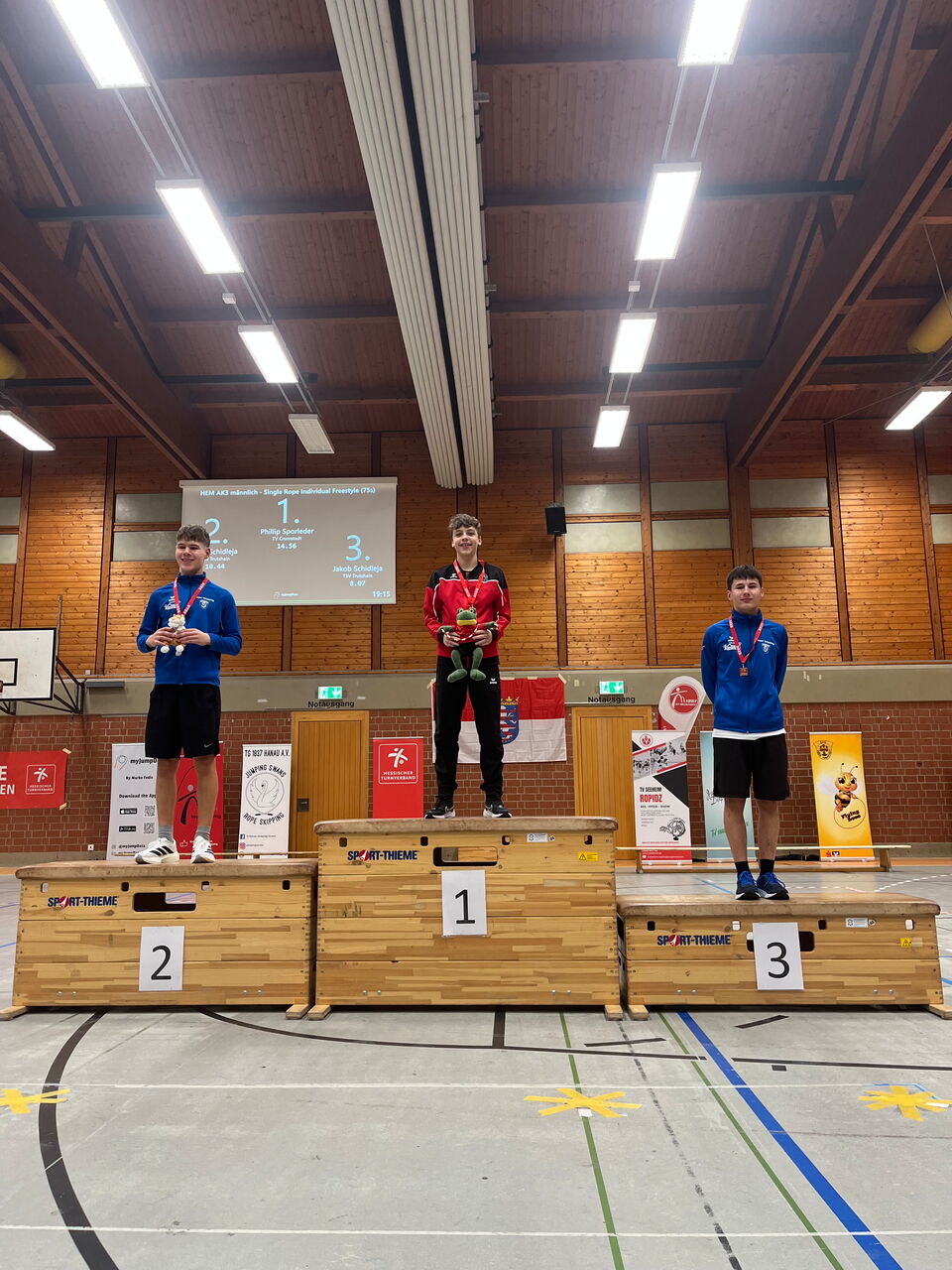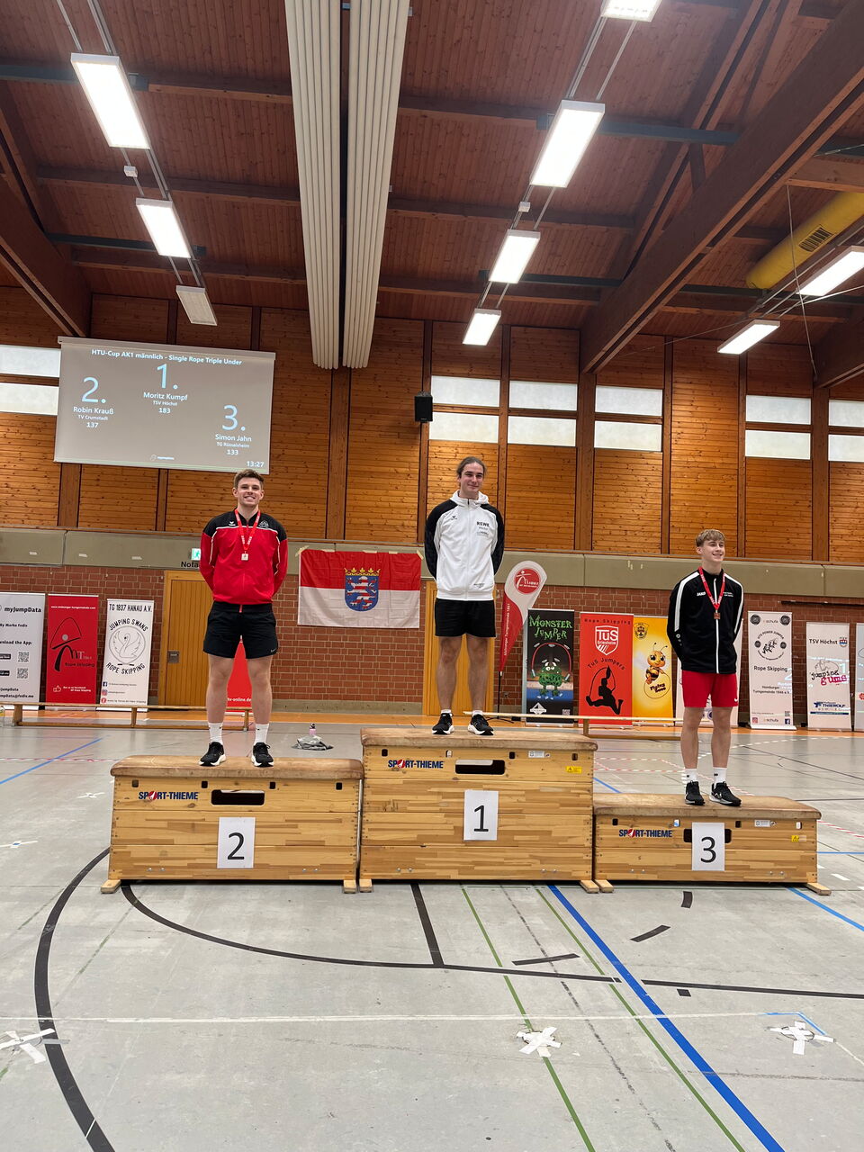 Am 08.11.2025 fanden die Hessischen Einzelmeisterschaften in Melsungen statt. Um 6 Uhr morgens hieß es Abfahrt. Mit Alina Opelt, Anna-Lena Menzer, Phillip Sporleder, Florian Gehre und Robin Krauß ging es mit 5 Springerinnen und Springern an den Start. Sie starteten in den Disziplinen Single Rope Speed Sprint, Single Rope Speed Endurance, Single Rope Individual Freestyle sowie im Double Under- sowie Triple Under-Cup. Schnell zeigte sich, dass die Frösche sehr starke Leistungen an den Tag legten und bewiesen ihr monatelanges Training. Es wurden gesetzte Ziele erreicht oder sogar übertroffen. Auch bei den Freestyles konnten alle eine saubere Leistung präsentieren und ihre Routinen mit keinem bis wenigen Hängern präsentieren.