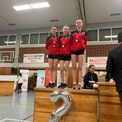 Erstmals ging ein Team unserer Medi Frogs (Emeline Manocchio, Lena Iffland, Milena Kneissler, Asmara Özer) an den Start. Sich aufeinander abzustimmen und miteinander statt alleine zu springen erforderte Konzentration, Motivation und Zusatztraining. Die vier Mädels meisterten den Wettkampf nach fleißigem Üben mit Bravour und konnten ihre Trainingsleistung fast immer abrufen. Eine gute Erfahrung um nächstes Jahr als Team bei den HTM auch wie die Großen um Qualifikationen auf Bundesebene zu springen.